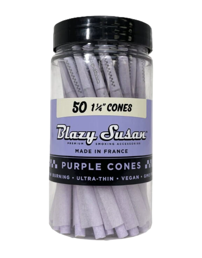 Blazy Susan Purple Pre-Rolled Cones – 1-1/4 Size | 50 Count | Ultra-Thin, Vegan, GMO-Free