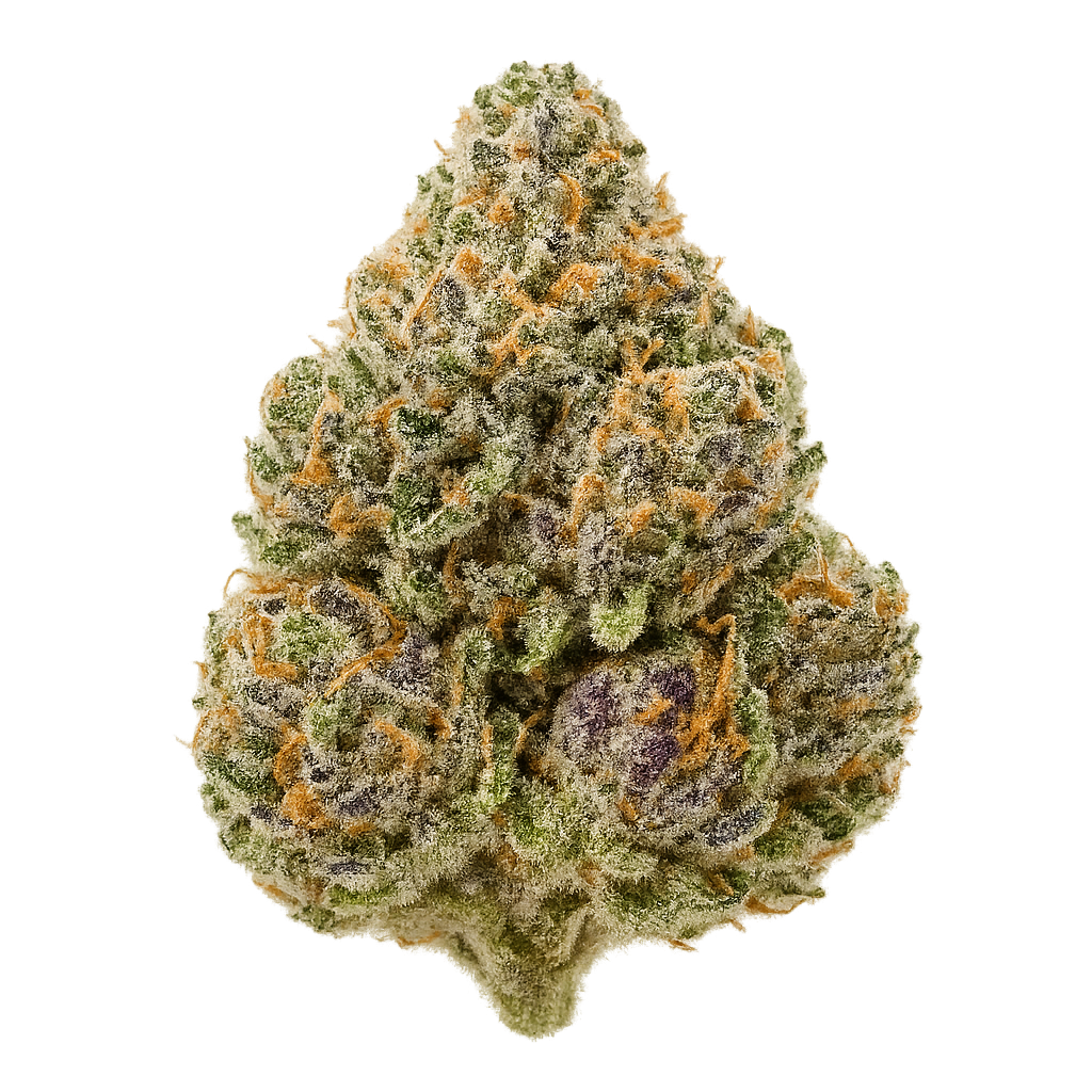 In the garden, Glitter Bomb is known for producing chunky, resin-rich buds with deep green coloration accented by bursts of purple and vibrant orange pistils. It’s no surprise this visual appeal carries over once cured, making it a photogenic favorite in any stash.