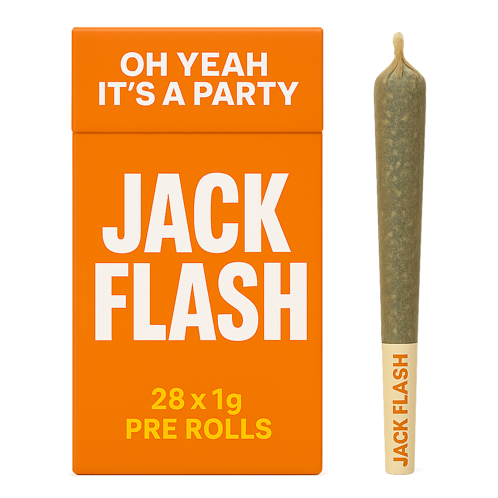 In summary, the Oh Yeah It’s a Party – Jack Flash – 28 x 1g Pre Rolls is the ultimate party pack for anyone who loves bold citrus flavor, energetic sativa effects, and the convenience of perfectly rolled joints. Legendary genetics, lively vibes, and 28 ready-to-smoke pre rolls—what more could you ask for? With Jack Flash in hand, every session feels like a celebration.